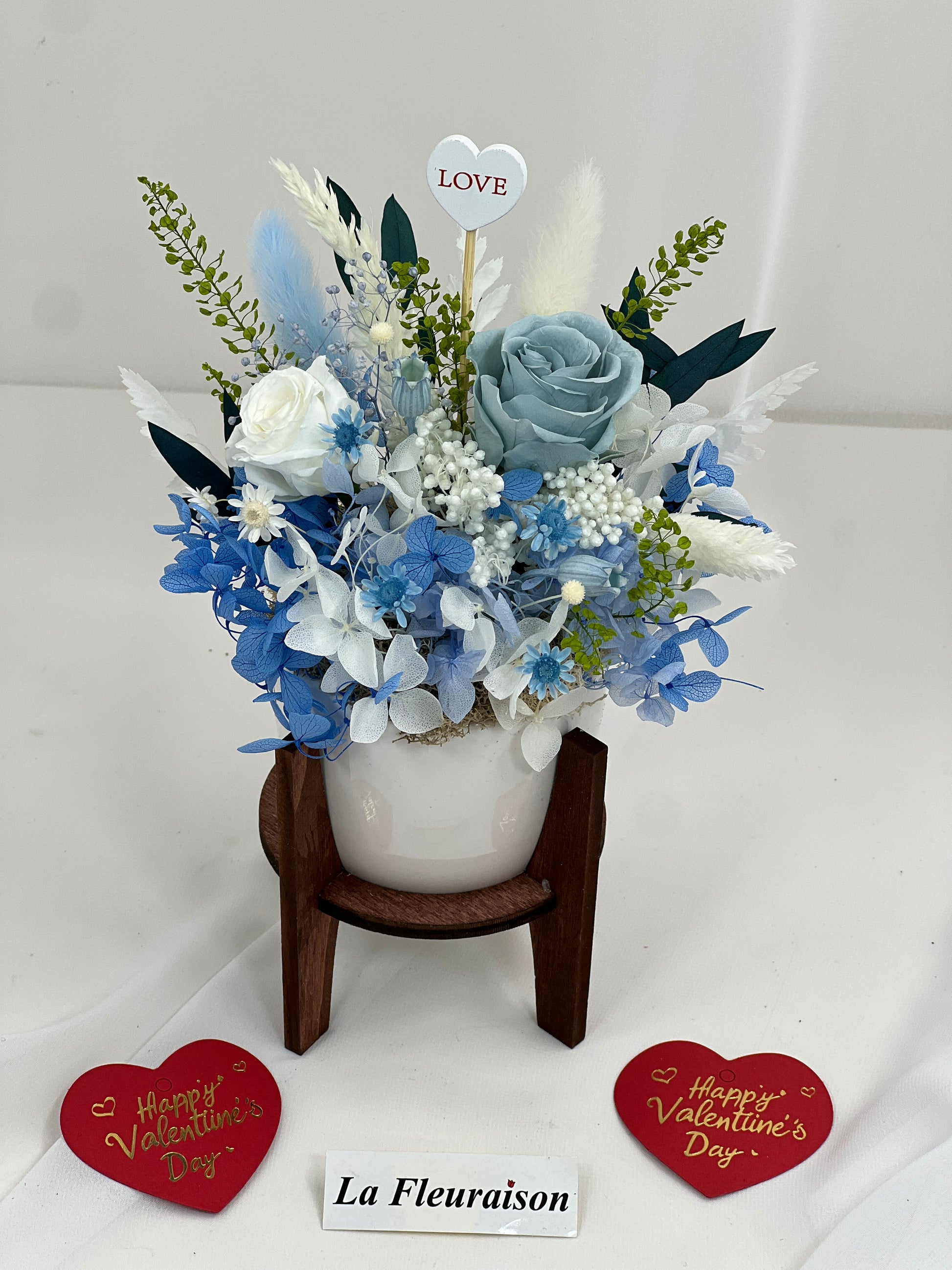 No. These arrangements are maintenance-free and should not be watered.3. What’s the difference between preserved and dried flowers?