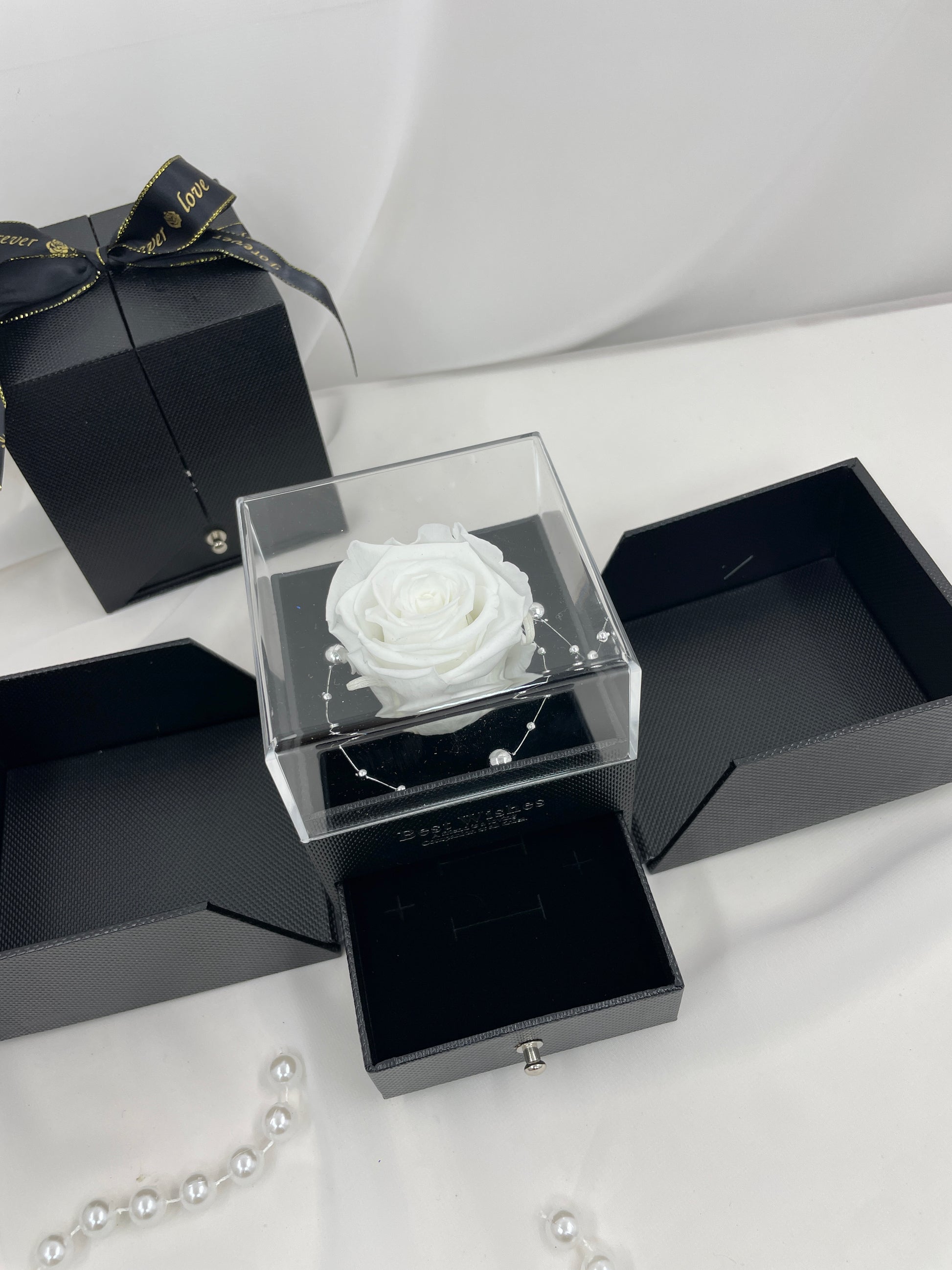 Forever Encased features a real preserved rose, expertly treated to maintain its natural beauty for years without water or maintenance.