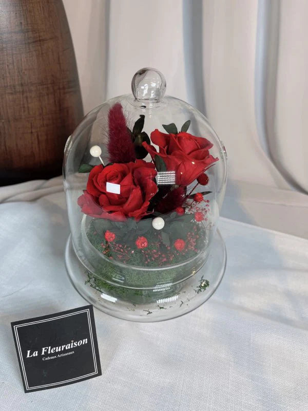 Indulge in the everlasting beauty of our Petite Enchantment Dome. Adorned with delicate preserved roses, encased in a mesmerizing glass dome, this stunning piece adds a touch of elegance to any space. Enjoy the timeless charm of these roses without the hassle of maintenance.