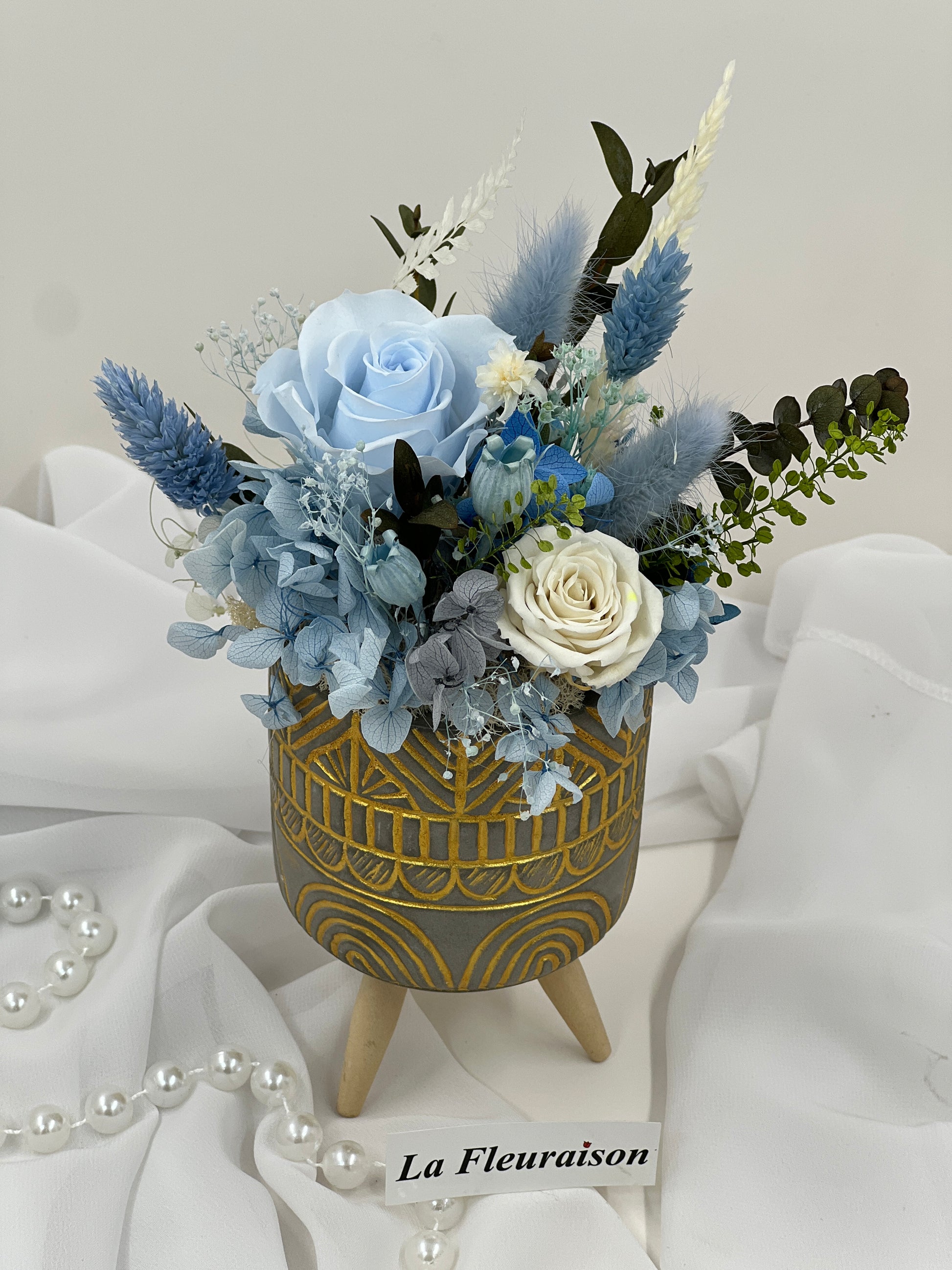 No. These arrangements are maintenance-free and should not be watered.3. What’s the difference between preserved and dried flowers?